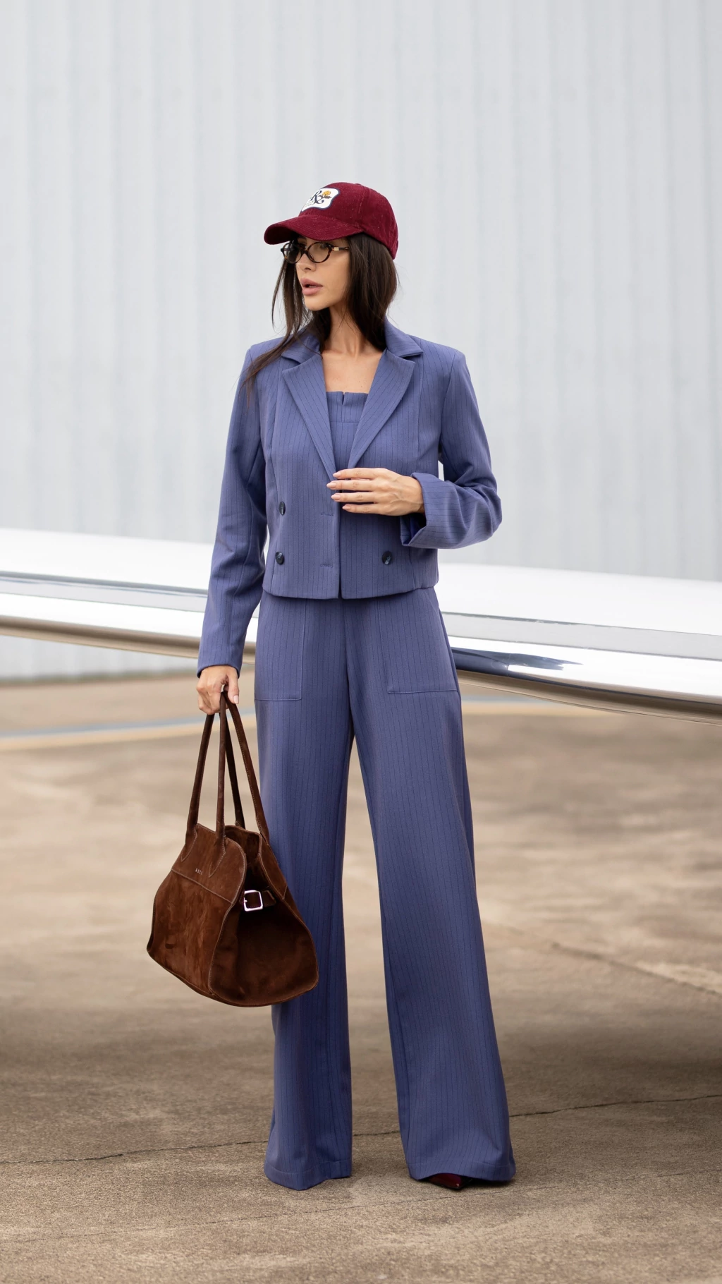 O clássico da alfaiataria em versão moderna e sofisticado, blazer risca de giz confeccionado em tecido em alta qualidade, com leve textura e listras verticais que alongam a silhueta, a peça possui modelagem cropped, ideal todas combinações.