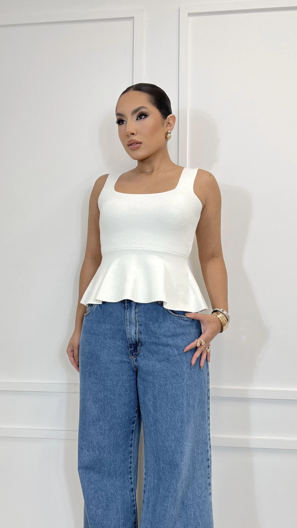 Com decote quadrado, alças largas e modelagem peplum, ela valoriza a silhueta e garante um visual delicado e moderno.