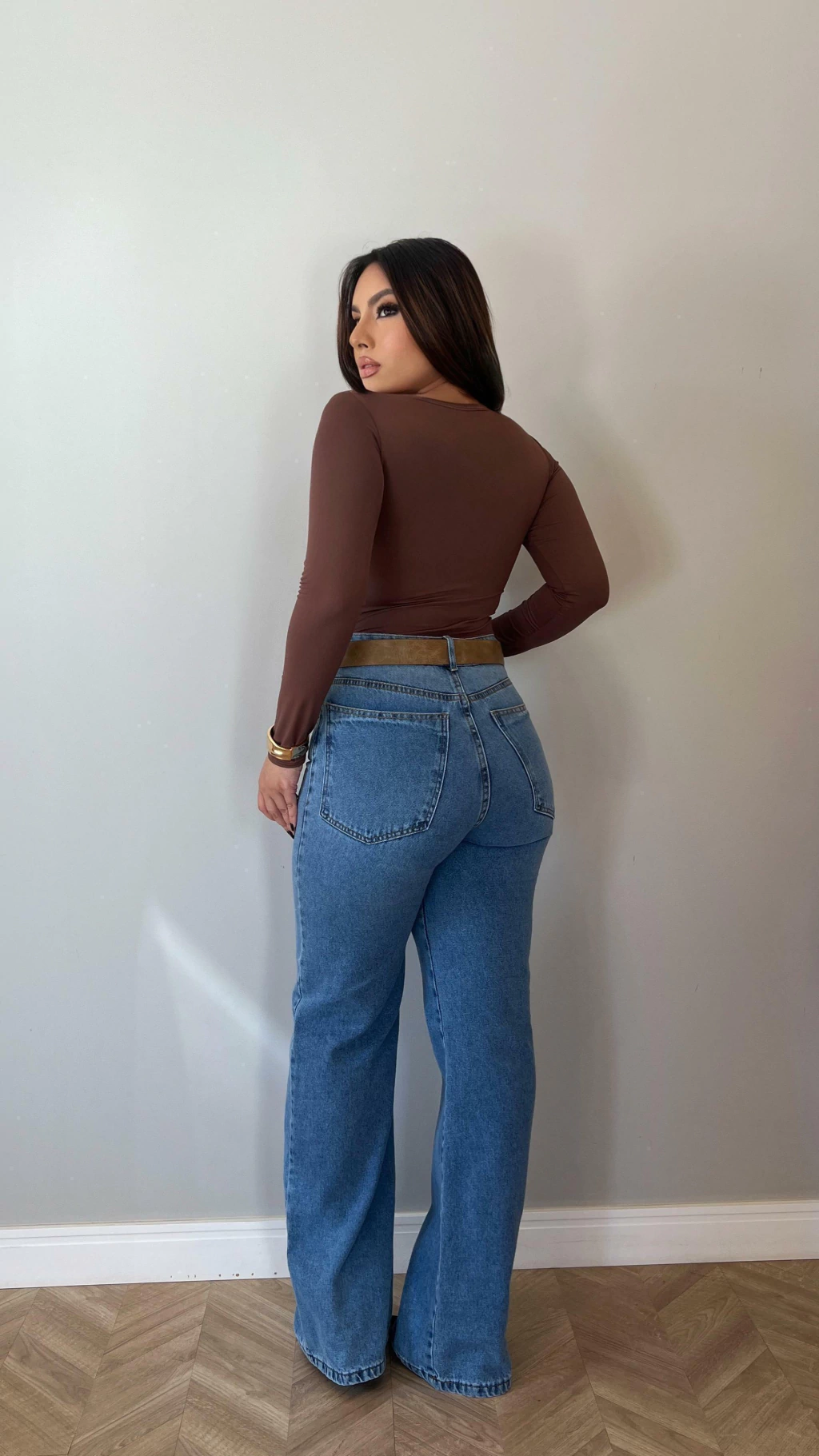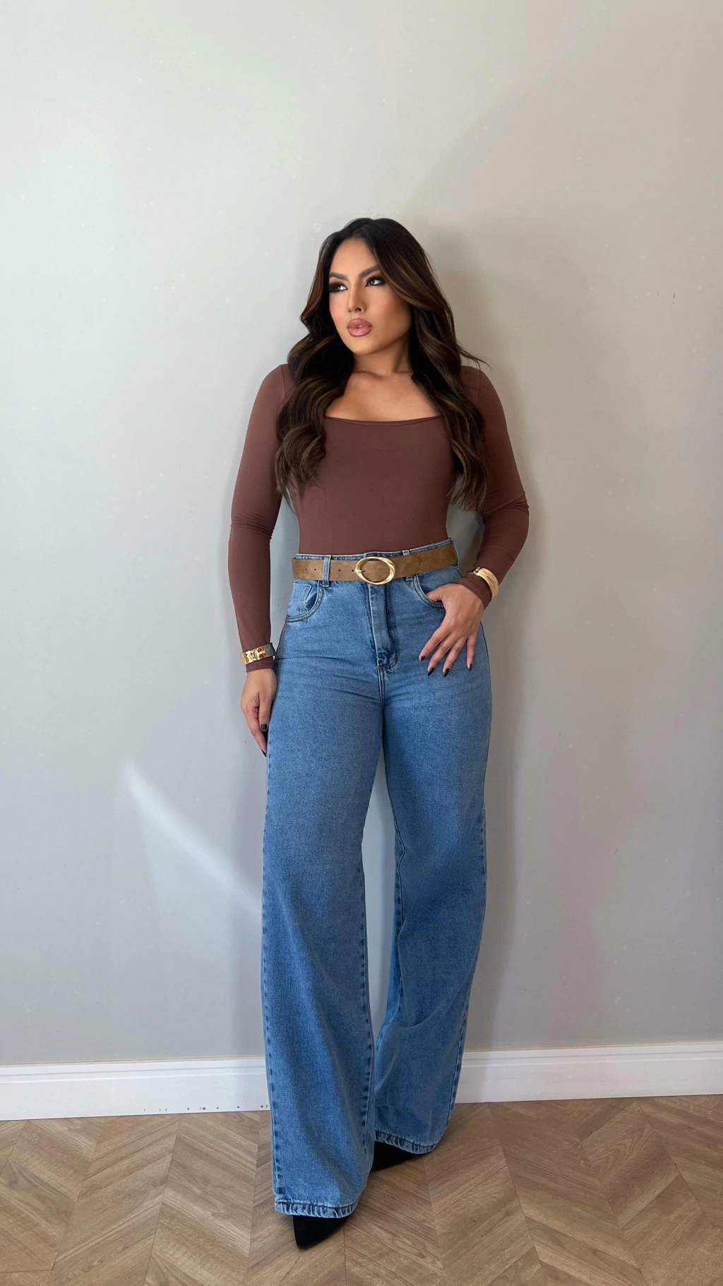 CALÇA JEANS CLOE: Com modelagem reta e lavagem clara, essa calça se destaca por seu cós alto, proporcionando um caimento perfeito que valoriza a silhueta.