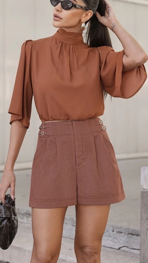 Shorts em Sarja com Fivelas Laterais confeccionado em sarja estruturada de toque leve, com caimento impecável que une conforto e sofisticação. A modelagem alfaiatada valoriza a silhueta, enquanto a cintura alta com recorte reto e fechamento frontal embutido garante um visual elegante.